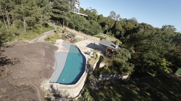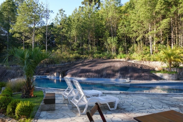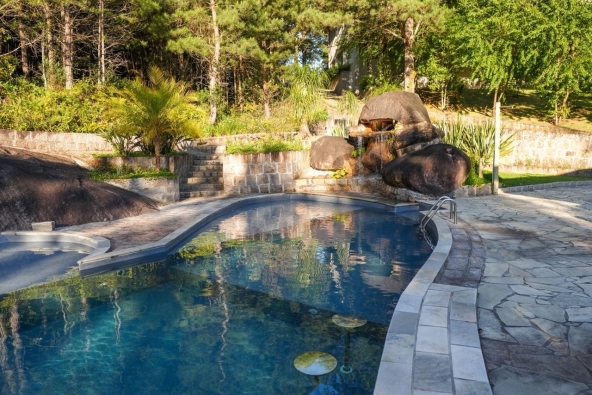 • Piscina em pedra com cascata