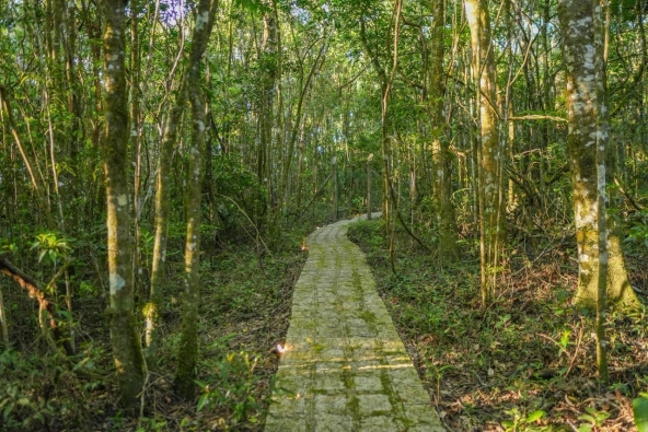 • Trilha na mata, campo de futebol e cancha de beach tennis
